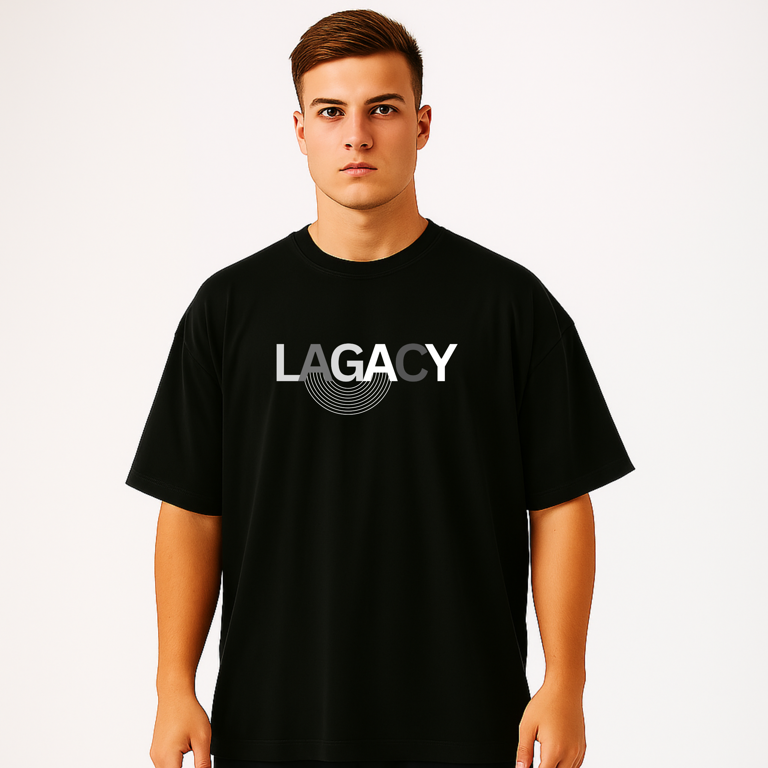 Product Details: Black oversized T shirt with print on the back which looks rich and attractive.